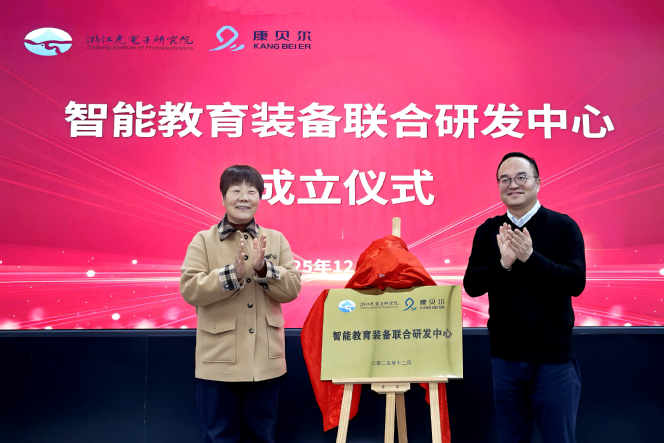 仪式上,双方围绕智能教育装备的研发与应用进行深入交流。李盛指出,联合研发中心要坚持市场导向,抢占教育装备发展高地,以人工智能等技术赋能教育,扎实推动工作落地。他强调,双方应把握机遇、明确攻关时序,形成具有显示度的成果,瞄准国家一流水平,努力成为浙中地区教育装备创新的“排头兵”。童丽萍表示,此次合作是企业发展的重要里程碑,康贝尔将依托浙江光电子研究院的科研与教研环境,实现“让教师教得轻松、学生学得轻松”的目标,推动更多优质产品服务教育教学一线。
