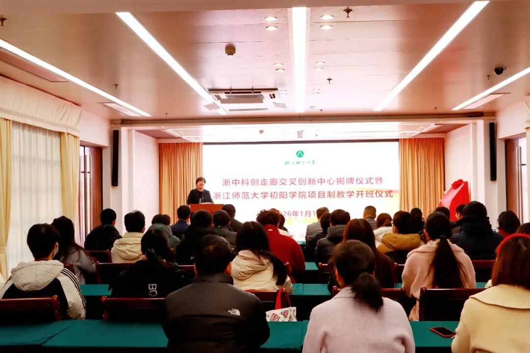 1月12日,浙中科创走廊交叉创新中心揭牌仪式暨初阳学院项目制教学开班仪式在浙江师范大学顺利举行。浙江光电子研究院联合浙江师范大学初阳学院、金华职业技术大学等浙中高校群,以“资源共享、协同育人、创新赋能”为核心,共同搭建起跨校、跨学科的拔尖人才培养新平台。浙江师范大学副校长、浙江光电子研究院院长李盛,金华职业技术大学农学院副院长李君荣,浙江师范大学附属中学党委书记童志斌,浙江师范大学初阳学院党总支书记周建峰,浙江师范大学教务处副处长邱欣,浙江师范大学人文学院老师高玉平,我院设备实验部主任陈飞等领导嘉宾及相关师生代表出席会议。会议由浙江师范大学初阳学院副院长宋清秀主持。